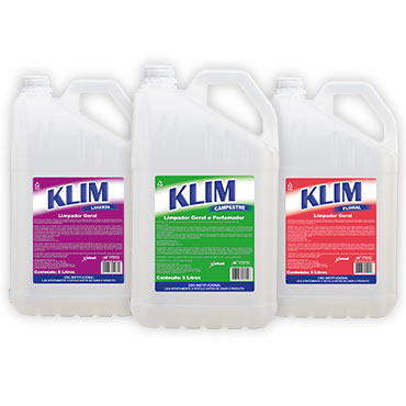 Klim utiliza um poderoso agente biocida, de amplo espectro, que garante desinfecção eficiente. Ao contrário dos desinfetantes convencionais, Klim possui poderosos agentes de limpeza, resolvendo os problemas de limpeza, desinfecção e odor de todas as superfícies. Com um único produto você desinfeta, limpa, neutraliza odores e perfuma os ambientes, isso o torna um produto de grande versatilidade, facilitando a tarefa de compra e reduzindo o risco de erros na escolha e na utilização do produto. Klim resolve sozinho todos os problemas de higiene e limpeza de banheiros institucionais. Klim está disponível nas versões: Floral, Campestre e Lavanda. Limpeza e Desinfecção de Superfícies Verticais As superfícies verticais como paredes, divisórias, janelas, portas, interruptores, ar condicionado entre outras devem estar devidamente limpas e desinfetadas, pois alguns microrganismos podem ser transmitidos pelo ar, através de minúsculas gotículas, partículas de poeira ou matéria orgânica de origem humana ou animal. Desinfecção Peças de Sanitários Da mesma forma, os vasos sanitários mictórios, pias, bancadas, lixeiras e equipamentos podem estar contaminados por esses microrganismos e devem ser bem limpos. Desinfecção de Pisos Nos pisos encontramos uma quantidade muito grande de microrganismos depositados, pois existe um índice ainda maior de gotículas e de poeira, além dos objetos contaminantes que caem sobre o piso. Há também uma agravante que é a contaminação cruzada proveniente do fluxo de pessoas entre os diversos ambientes.