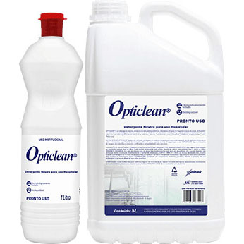 Opticlean é um detergente neutro ideal para limpeza ou pré limpeza de instrumental cirúrgico e artigos médicos de forma geral, móveis, utensílios e demais itens laváveis encontrados nos hospitais, clínicas, ambulatórios, laboratórios e outros locais onde se presta o auxílio à saúde. Pode ser usado com segurança em inox, PVC, acrílico, polietileno, vidro, porcelana e outras superfícies laváveis. Possui mistura de tensoativos especialmente formulada para remover, com facilidade, sujeiras lipídicas e proteicas normalmente encontradas no ambiente hospitalar. Opticlean pode ser aplicado diretamente sobre a superfície, com o auxílio de uma esponja ou fibra não abrasiva. Deixar agir por alguns minutos e, se necessário, esfregar. Enxaguar com água corrente. Quando possível, deixar os artigos e utensílios imersos na solução do produto diluído, em água na proporção de 1:50.